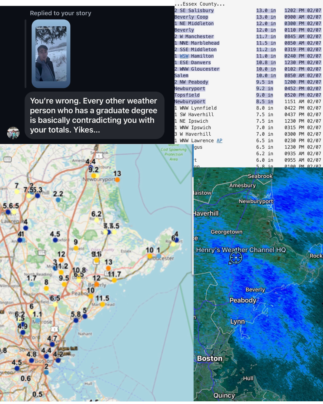 What an insane day out there across parts of New England. I had an absolute blast with this one. Our localized significant snowstorm is over and wow. Over the last few days I mentioned that some towns across the north shore had a real possibility of a foot of snow with an inverted trough setup and ocean effect! The exact location was impossible to predict a few days out but it all came together in localized areas! The jackpot areas were across Beverly, Hamilton, Marblehead, Salem, Peabody and up through Topsfield! A foot of snow in Beverly, Hamilton, Marblehead and around Middleton, including a localized area of Salisbury.