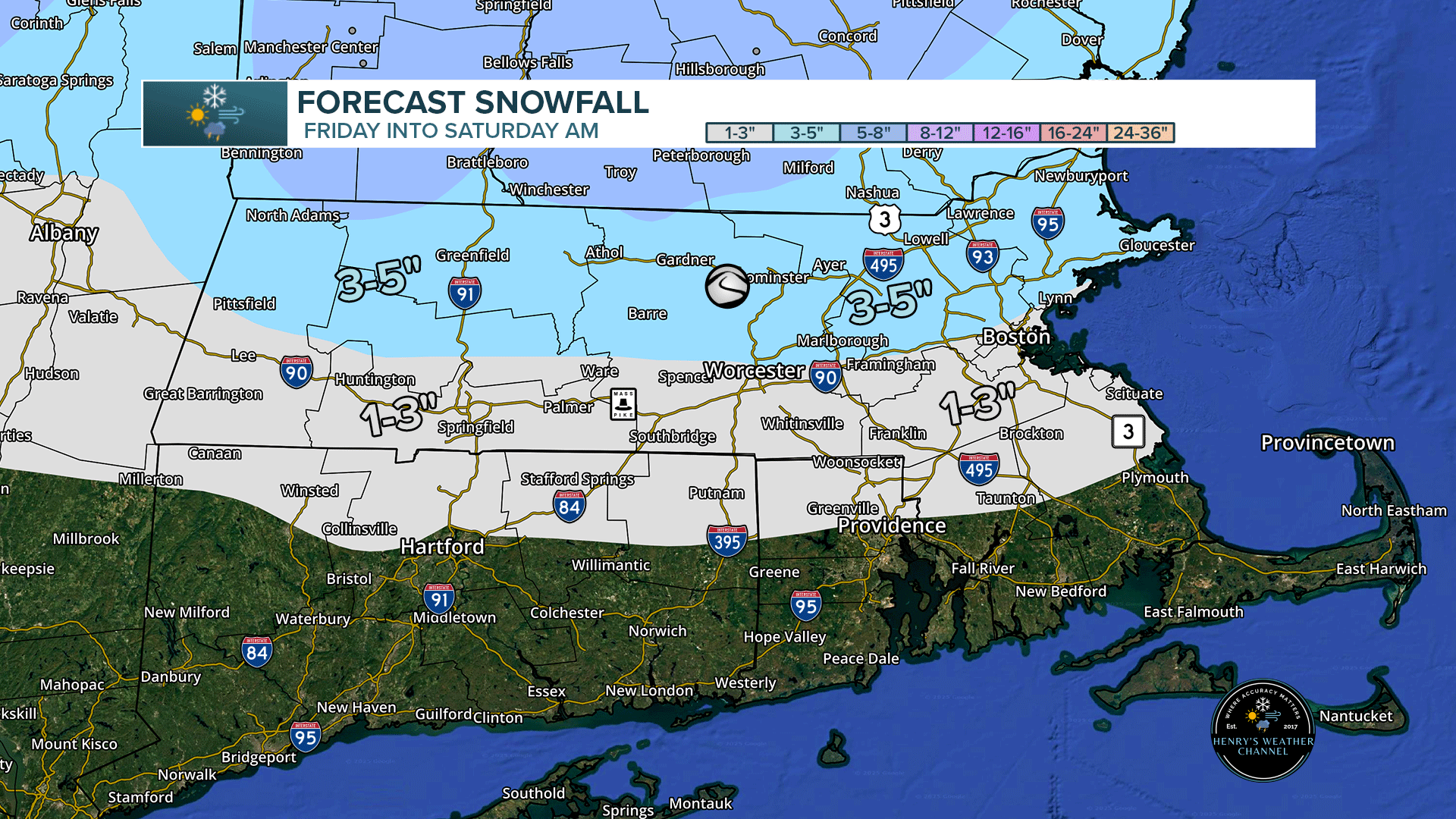 The afternoon and evening commute Friday is set to be an absolute mess with snow and mixed precipitation! Take it slow! The steady snow moves out by around 2-4 AM Saturday with some lingering snow showers in the morning. This will be a wetter type snow across SNE and a bit fluffier across the mtns with temps in the upper 20s. Low 30s across SNE