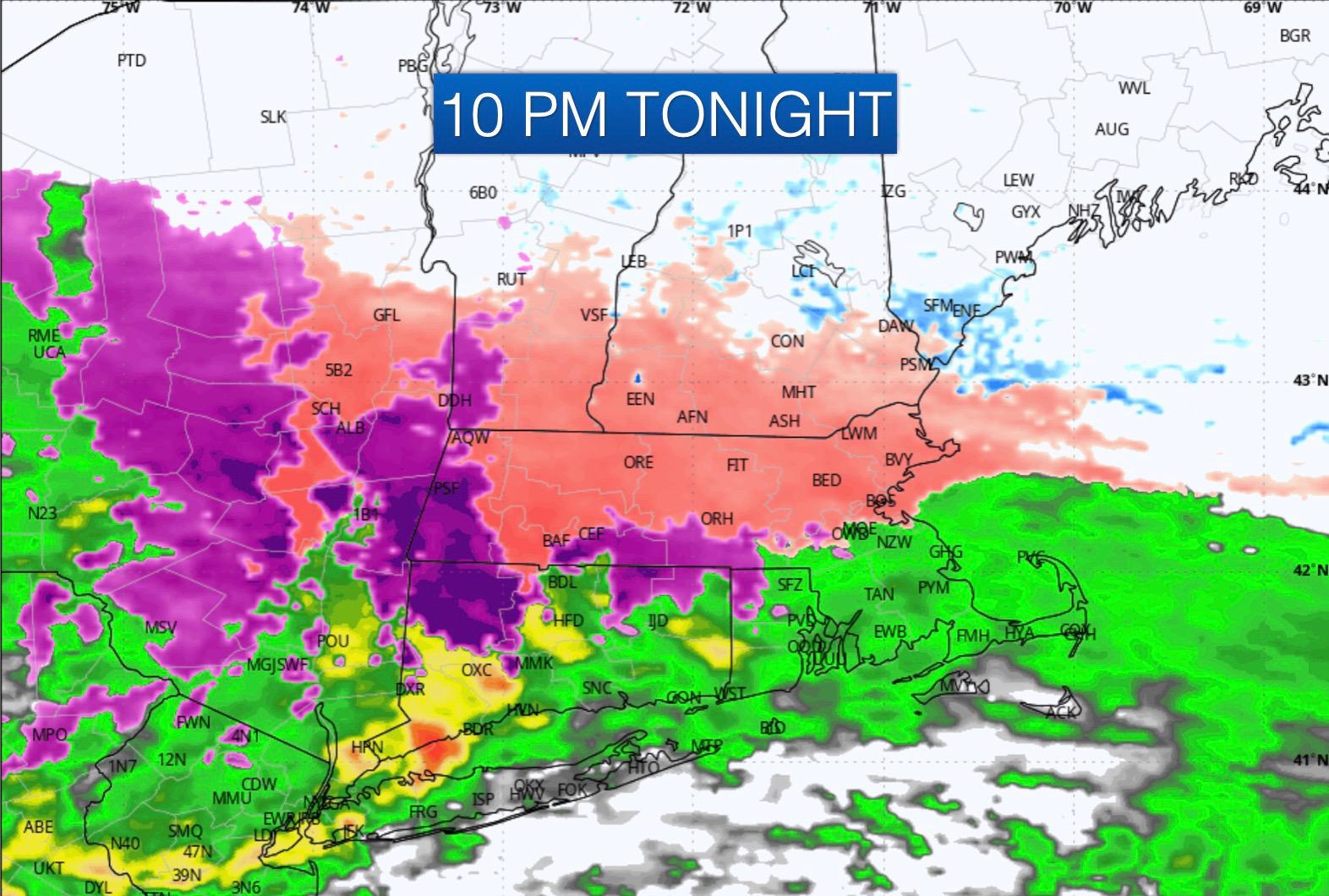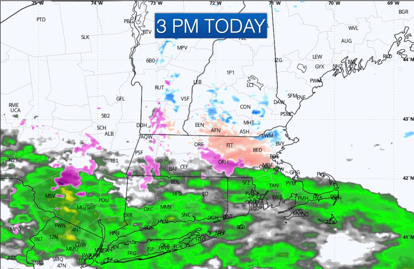 Good morning! What a mess we have on the way! A complicated forecast with this! Mixed precipitation moves into SNE today by the afternoon and evening! Sleet will be the primary precip type with some freezing rain across the interior. The evening commute will get a bit slippery especially across the interior as that sleet moves into southern VT, NH. Widespread sleet away from much of CT, RI, SE MA by 7-10 PM tonight!